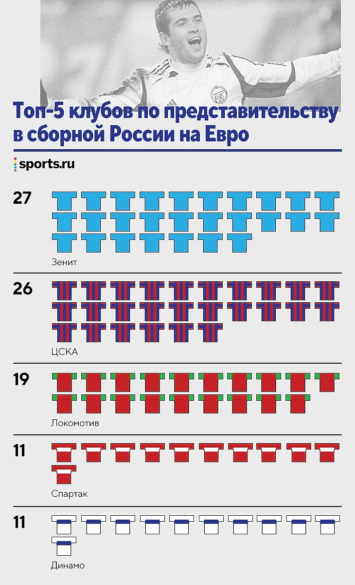 История составов на Евро: «Зенит» и ЦСКА лидеры по представительству, в 96-м – масса легионеров из топ-5 лиг у Романцева