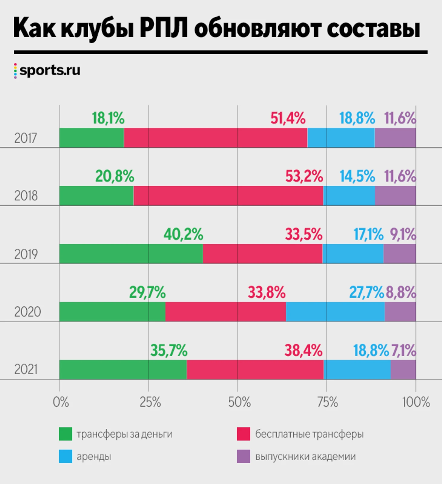 • Клубы РПЛ все реже внедряют в состав выпускников академий и чаще оформляют бесплатные трансферы.