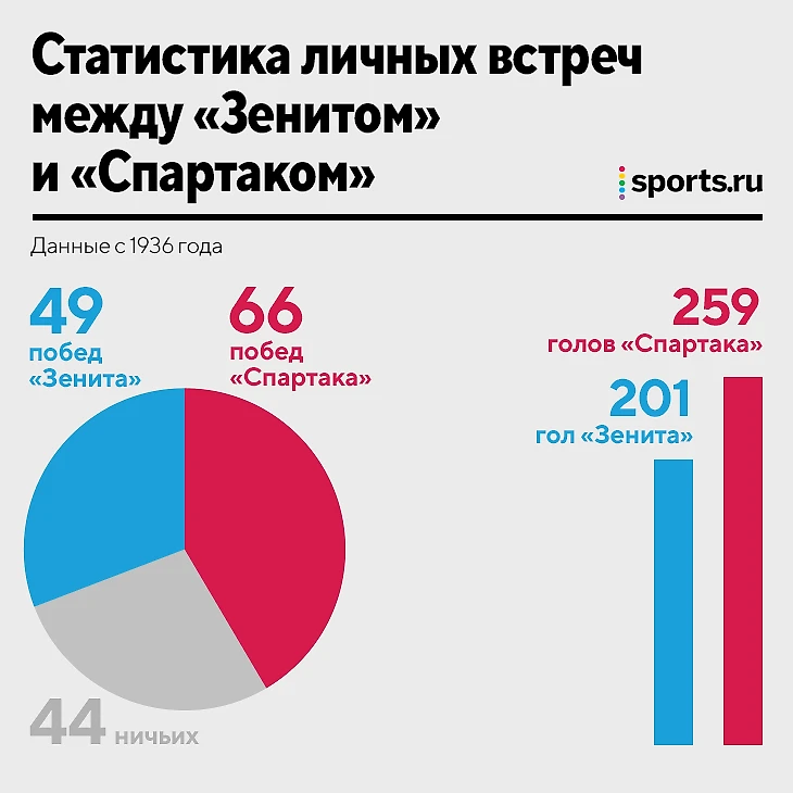 Здесь тоже превосходство «Спартака», пока клубы отделяют 17 побед, но «Зенит» явно исправляется в современной истории.