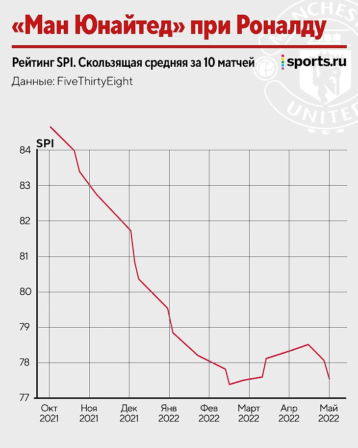 Дальше – «Ман Юнайтед», который до прихода Роналду финишировал вторым в АПЛ и готовился к фиксации на топ-уровне. Мы знаем результат – но каким глубоким вышло падение?