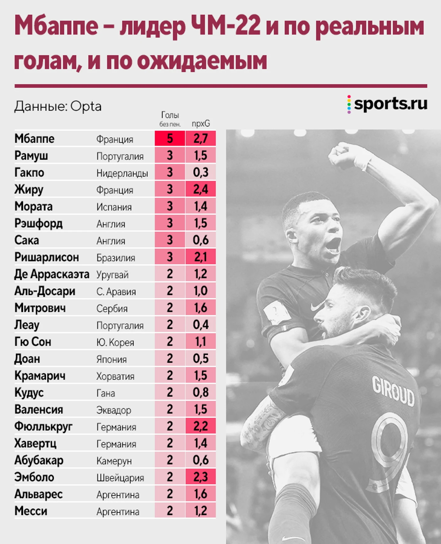 Мбаппе заслуженно лидирует, демонстрируя удивительную реализацию. Больший разрыв между ожидаемыми голами и реальными – только у Коди Гакпо и Букайо Сака.