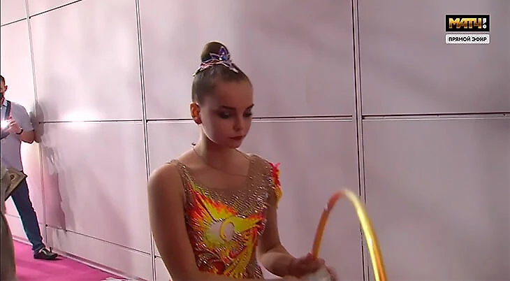Симонов: Давайте смотреть дальше. В квалификации обе наши девочки сегодня в тройке сильнейших и в обруче, и с мячом.