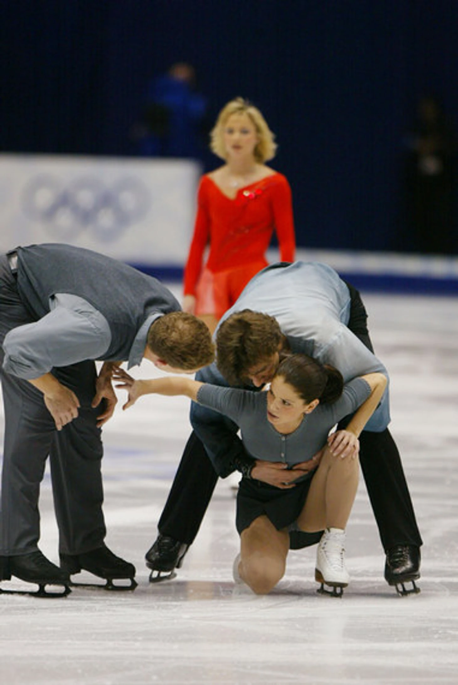 Сале с Пеллетье выходили следом и наблюдали за оценками русских уже на льду. Свою произвольную они поменяли всего за несколько месяцев до Олимпиады – с «Love story» канадцы выступали несколько лет подряд, выигрывали чемпионат мира и вернулись к ней, отказавшись от поставленной специально к Олимпиаде программе на музыку Рахманинова.