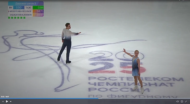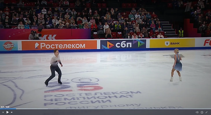 Проверим прокат Мухортовой и Евгеньева с секундомером – тем более тайм-коды в плеере Первого канала работают четко.