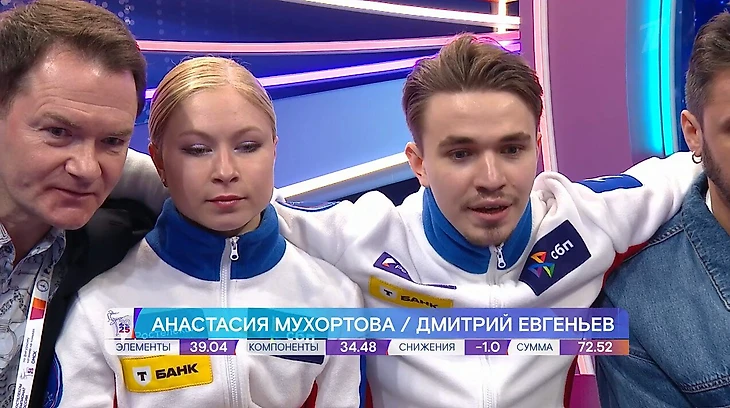 Пострадали Анастасия Мухортова и Дмитрий Евгеньев – арбитры оштрафовали их на один балл за нарушение времени.