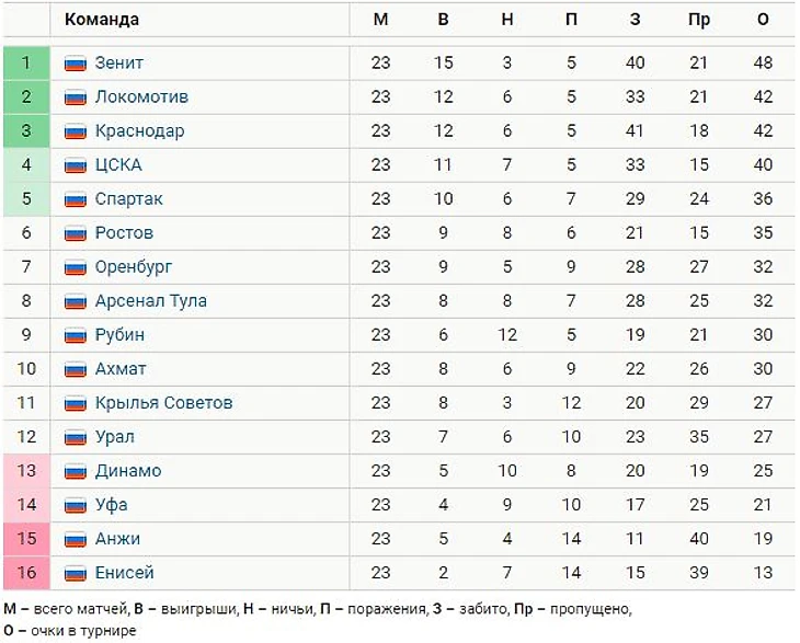 5-ая команда Спартак. Отставание от 1-го места = 12 очков, отрыв от зоны стыков= 11. Теоретически в стыки попасть вероятность выше, чем за чемпионство бороться. Спартак может бороться за зону ЛЧ(как и Ростов, отстающий всего на одно очко), а остальные 4 клуба- за чемпионство.