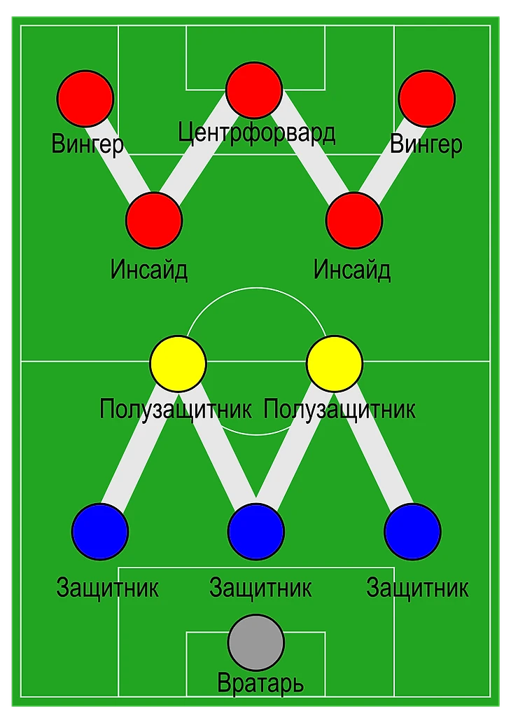Схема W-M: Football_Formation_-_WM.png: User: Threnerderivative work: Leotrubach (talk) - Football_Formation_-_WM.png, CC BY-SA 3.0, https://commons.wikimedia.org/w/index.php?curid=7853275