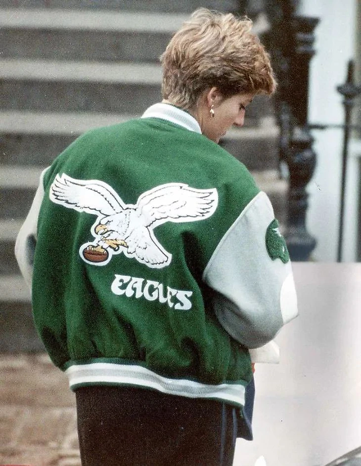 Если вы являетесь болельщиком команды НФЛ "Филадельфия Иглс", то, вероятно, видели это изображение: принцесса Диана в зелено - серебристо - белой куртке Орлов.