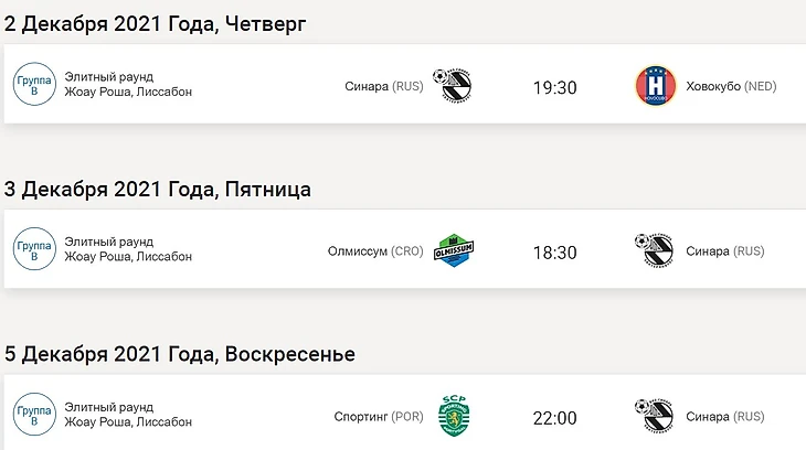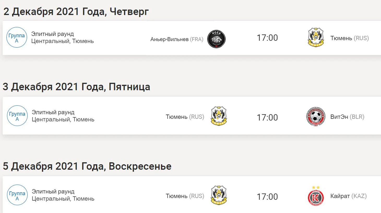 Стало известно расписание матчей российских клубов "Синара" и "Тюмень" в Элитном раунде Лиги чемпионов УЕФА по мини-футболу.