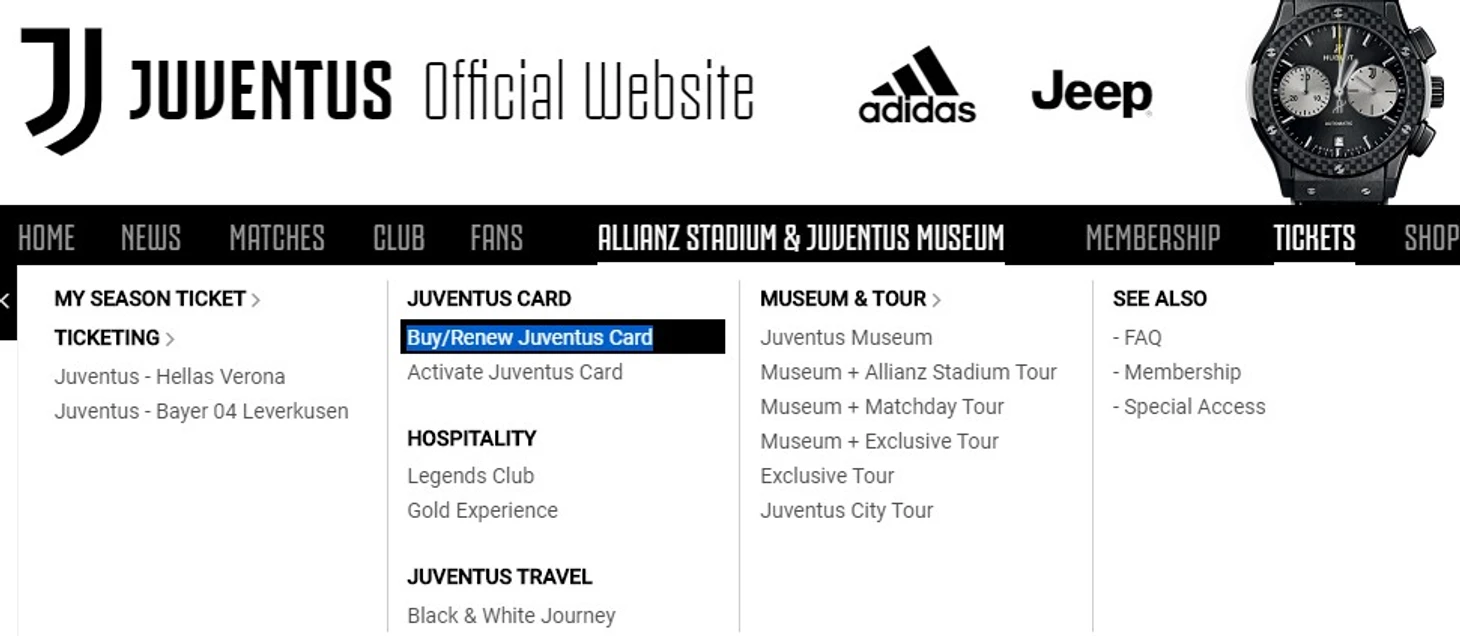 . Затем идёте в раздел Tickets. Оттуда в раздел Juventus Card. А уже оттуда Buy/Renew Juventus Card.