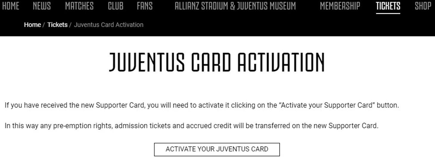 (путь Tickets - Juventus Card - Activate Juventus Card) и жмёте на кнопку.
