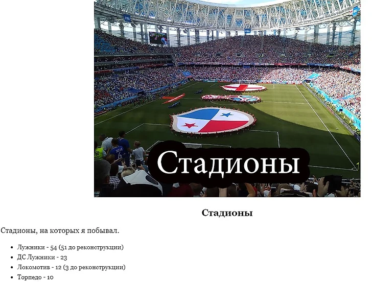 Не был бы собой, если бы обошёлся без статистики. Запилил отдельную статистику по стадионам, на которых был.