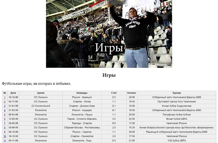 Первой игрой, на которую я осознанно захотел пойти был матч сборных России и Франции, который прошёл 10 октября 1998 года в Лужниках. Посмотреть вживую на Зидана во время своего первого похода на футбольный матч — что может быть круче? Понятно, что я хорошенько подсел на всё это дело и стал часто ходить на игры.