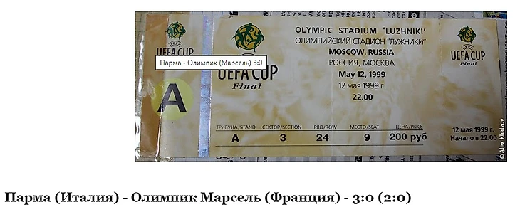 Или московский финал еврокубка с Буффоном за 200 рублей. 018 - 12.05.1999. Парма - Олимпик (Марсель) 3:0.
