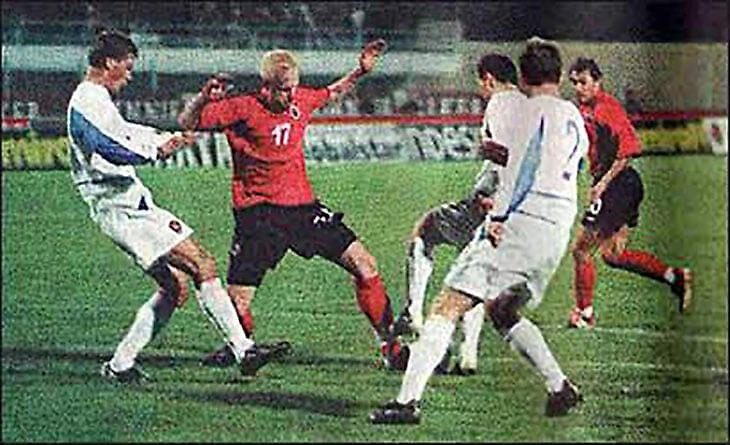 Пропустили в середине первого, Андрей Каряка отыграл только на 77-й, но албанцы тут же влепили еще. Идет 82-я, Албания в два паса доводит до штрафной Сергея Овчинникова, а Игли Таре сначала выигрывает наверху у Геннадия Нижегородова и бьет в ближний – Босс спасает, потом добавляет – это уже неподъемные 1:3.