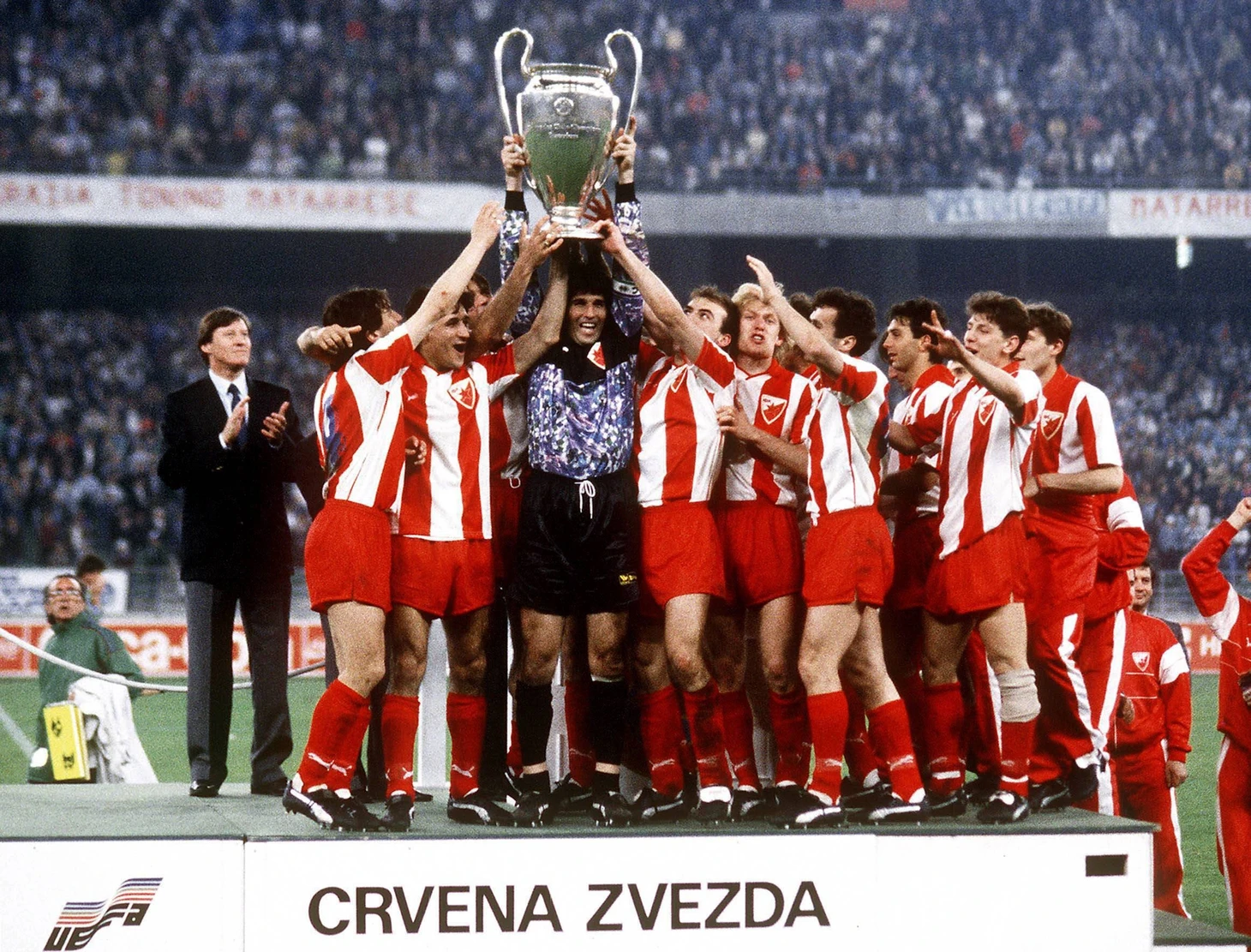Розыгрыш Кубка Чемпионов 1991 года, мог стать историческим для всей Восточной Европы и для доживающего свои последние дни - Советского союза. Дело в том, что в финале вполне могли сыграть Црвена Звезда и Московский Спартак, остановивший Наполи с Марадоной и Мадридский Реал, Спартак смог остановить куда менее грозный соперник в полуфинале, это был Французский Марсель с великолепным Жаном-Пьером Папеном в составе. По второй ветке турнира летела к финалу Кубкаи Чемпионов еще одна Восточно европейская сенсация - Югославская Црвена Звезда, выбившая из турнира сильный тогда - Глазго Рейнджерс и грозную во все времена Баварию. В отличие от Стяуа, Гамбурга и Ноттингема - Црвену звезду привела к такому успеху целая группа футболистов, которые стали суперзвездами после победы и были растащены суперклубами, буквально уже на следующий сезон. Просинечки, Михайлович, Югович, Панчев, Савичевич - эти имена знают все любители футбола. Получилось так, что после этой победы они разьехались по новым клубам, а после распада Югославии, спустя несколько лет, оказались еще и гражданами враждебных друг другу государств. Сборная Югославии, с таким составом могла бы многого добиться,они вышли на Евро-92, но из-за начавшейся войны Югославию исключают из турнира, заменяют на Данию ( которая стане чемпионом Евро-92). А затем Югославия распадается и потенциально Великая сборная прекращает свое существование - навсегда. Црвена Звезда существует и сейчас, даже становится чемпионом и играет в Лиге чемпионов, даже обыграла Ливерпуль в прошлом сезоне, но до Величия той команды им очень далеко.