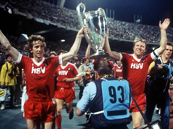 История Гамбурга не так удивительна, этот клуб довольно известен и популярен был в Германии в 50-60 е годы, был чемпионом, в 1968 году был в финале Кубка кубков, где проиграл Милану. Удивляет, то что такая популярная Немецкая команда сейчас играет во второй Бундеслиге и вряд-ли ближайшие лет 10 ( если только ее купят шейхи или Российский олигарх) сможет повторить успех 1983 года. Гамбург долго шел к этому успеху. Проиграв финал Кубка Кубков - Милану в 68, спустя почти 10 лет -1977, Гамбург все-таки выигрывает этот трофей. но это были цветочки, настоящий подьем начинается с приходом нового тренера Бранко Зебеца и Английского нападающего Кевина Кигана, который находился в потрясающей форме и в 1977-78 году стал лучшим футболистом Европы, два года подряд. Зебец в свой первый сезон делает Гамбург чемпионом и уже на следующий год выводит команду в финал Кубка Чемпионов, где уступает Ноттингем форесту. Зебеца отстраняют от руководства из-за проблем с алкоголем, команда отдает чемпионство и попадает в Кубок УЕФА, где проигрывает в финале - Гетеборгу. На пост тренера приходит Эрнст Хаппель, он возвращает Гамбургу чемпионство и в 1983 году снова выводит их в финал Кубка Чемпионов, где наконец побеждают, обыграв 1-0 Ювентус. После этого успеха Гамбург еще лишь 1987 году взял Кубок Германии и на этом все, команда покатилась вниз.