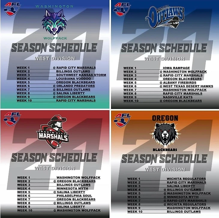 Да, всё верно. В 2019 году AFL приостановила деятельность по проведению матчей из-за ковидных ограничений. Сейчас большинство из них сняли и лига перезапустилась. В этом сезоне будет 4 дивизиона по 4 команды. Моя команда будет играть в дивизионе Запад, где кроме Вашингтона выступают команды из Южной Дакоты, Орегона и Монтаны.