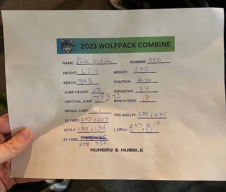 На второй этап, мы перешли в манеж, где делали беговые упражнения. 20 ярдов, 3 конуса и 5-10-5 челнок. В этом упражнении три раза сбегал вхолостую, потому что не касался линии. Но тут тоже оказался в топе среди линейных. В итоге по физике получилось хорошо, намного выше моих ожиданий. Спасибо Артёму Зеленцову, моему тренеру по физподготовке.