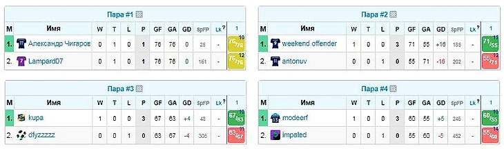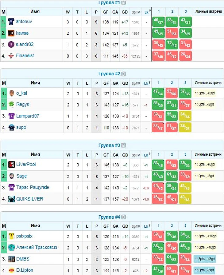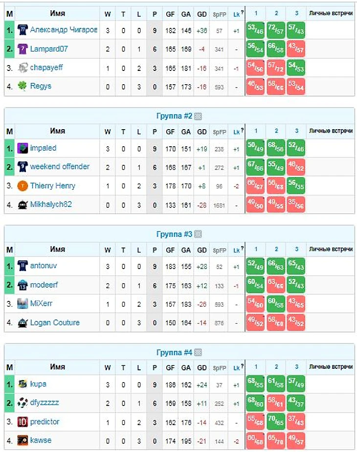 В турнире приняло участие 16 участников, которые на старте были разбиты на 4 группы