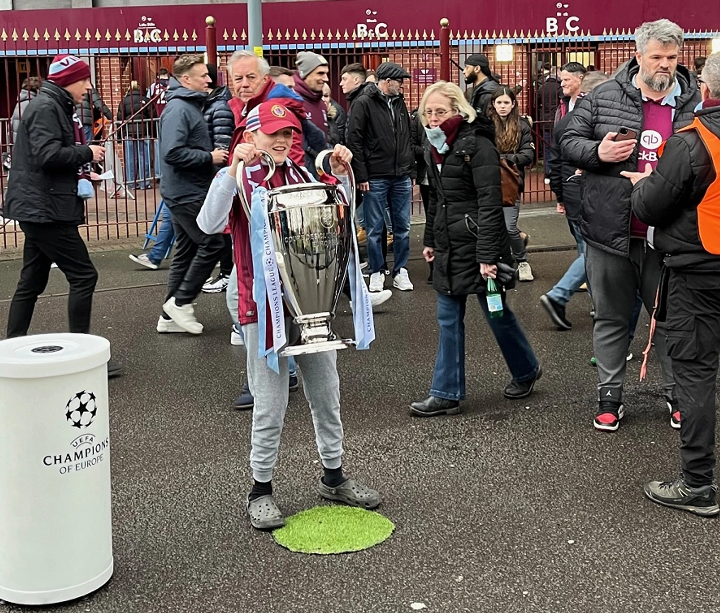 Здесь можно было сфотографироваться с Кубком чемпионов 1982 года.