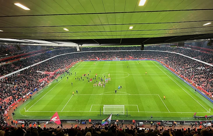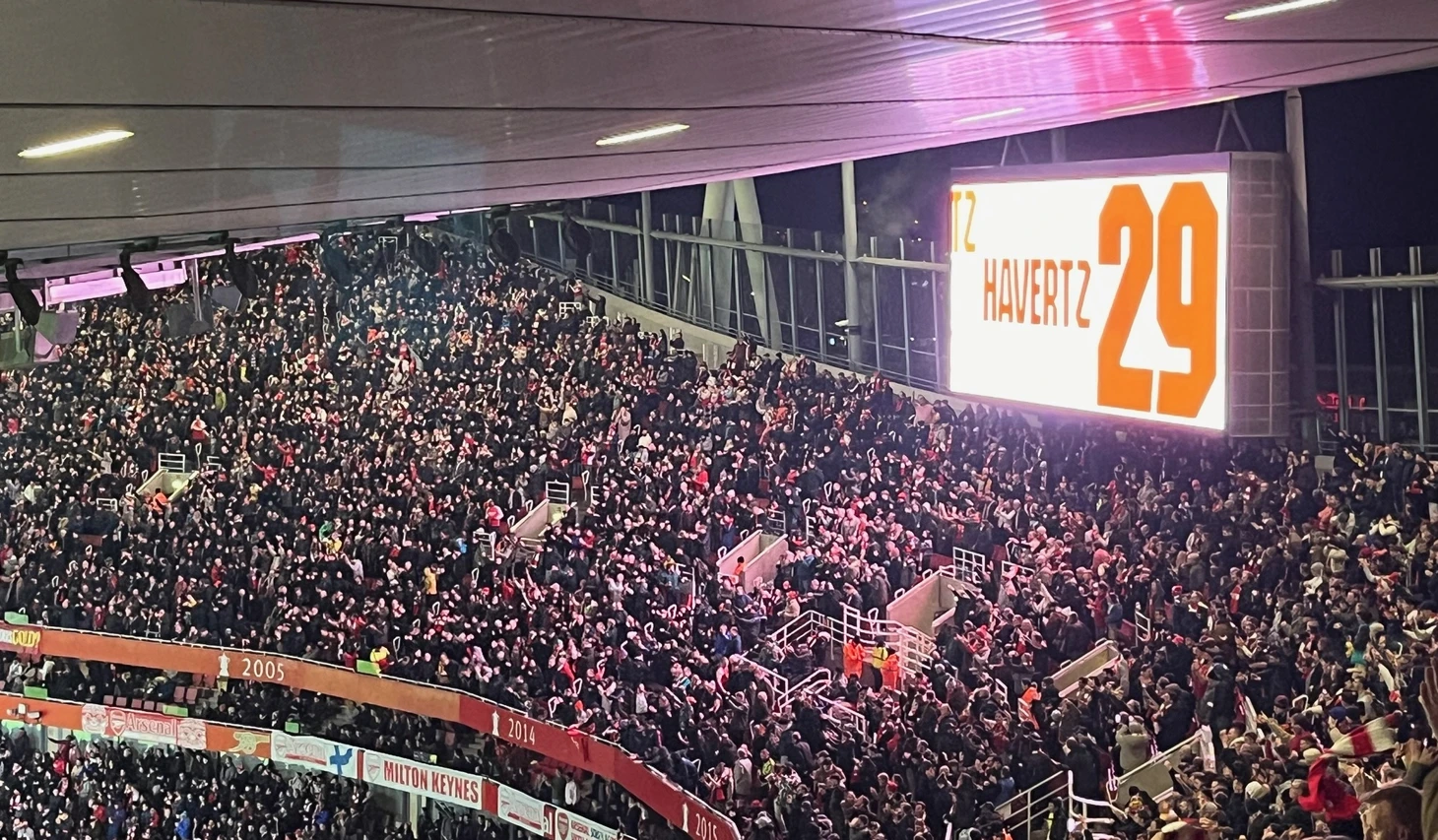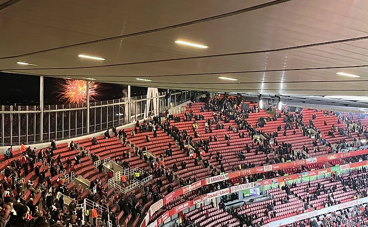 Мое место было на южной трибуне (за воротами), так называемой «Clock End». Названа она в честь знаменитых часов, находившихся на аналогичной стороне на легендарном «Хайбери». Не самый лучший вид компенсировался отличной атмосферой - более горячей, чем на центральных трибунах.