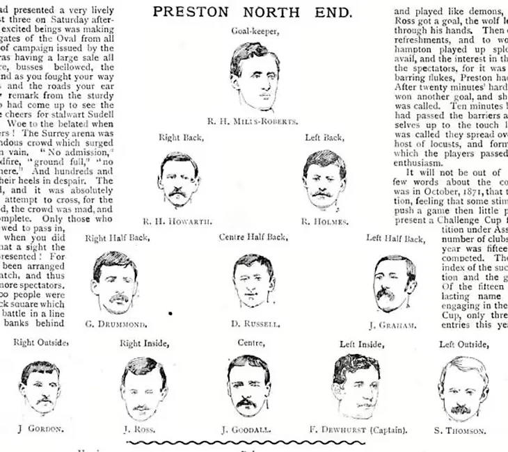 Согласно легенде, перед финалом кубка 1888 года игроки «Престона» были настолько уверены в победе, что пытались позировать на фоне трофея до начала матча. Хотя в итоге они уступили «Вест Брому», это показывает, насколько они были уверены в своих силах – что они с блеском продемонстрировали в следующем сезоне.