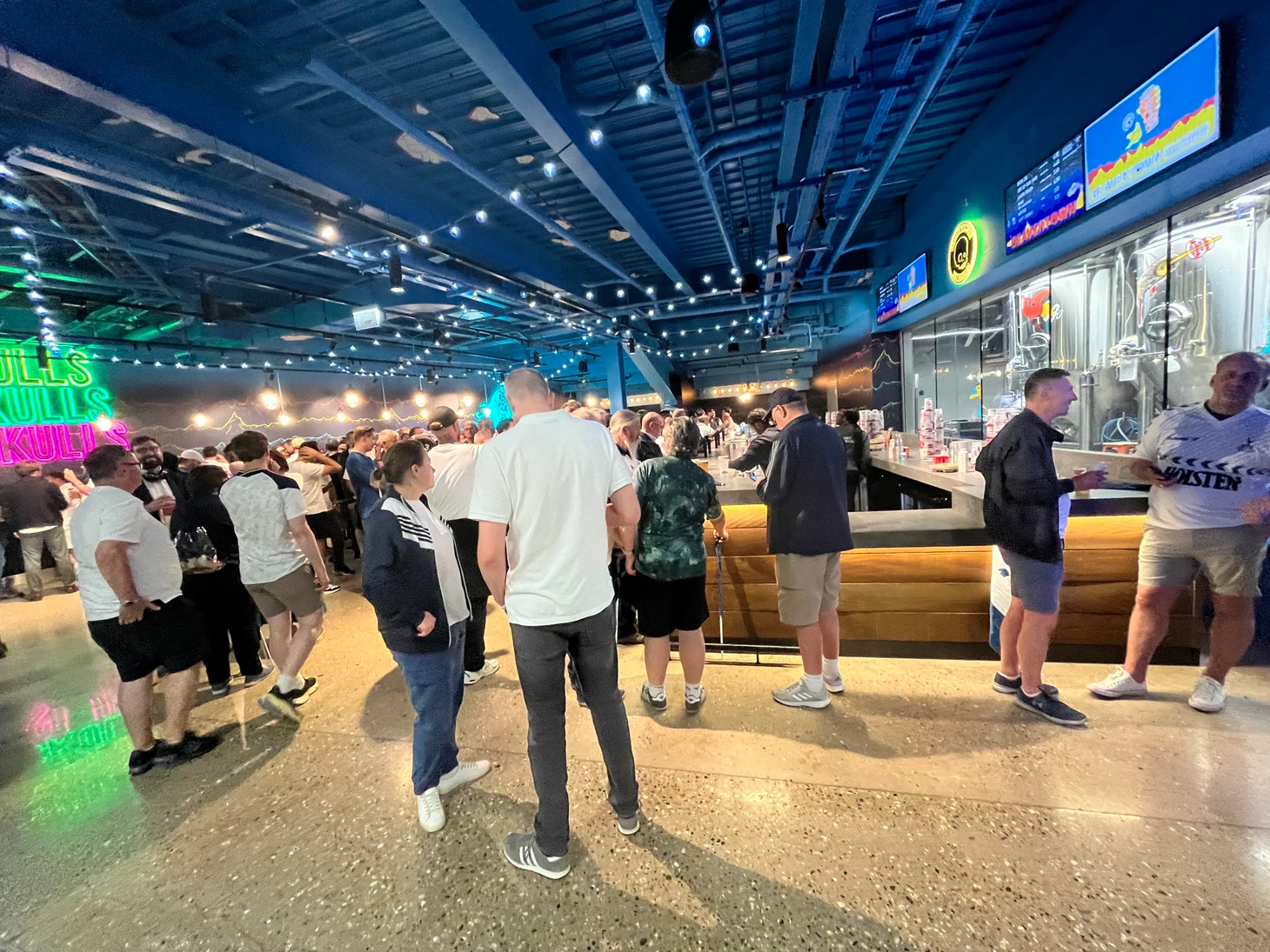 Болельщики отмечают гол в стильном баре. Здесь подают местное пиво под маркой Beavertown..