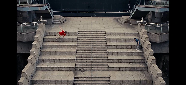 Снимали в Йокохаме и Уэно. Там классные споты, в том числе тот, на котором в 2011 году снимали самое престижное соревнование в мире фриранинга – Red Bull Art of Motion (это та часть видео, где мы синхронно спускаемся по лестнице).