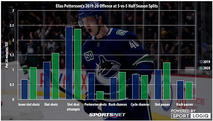Но в этом сезоне ситуация изменилась. В первых 40 играх регулярного чемпионата (до наступления 2020 года) у Петтерссона 41 очко, в следующих 28 – 25 очков. Большим падением темпа это не назвать. Более того, Петтерссон образца второй половины сезона улучшил показатели первой половины в среднем количестве бросков из опасной зоны и ключевых передач. Было бы крайне интересно взглянуть на форму Петтерссона в конце регулярки и в возможном для «Ванкувера» плей-офф.