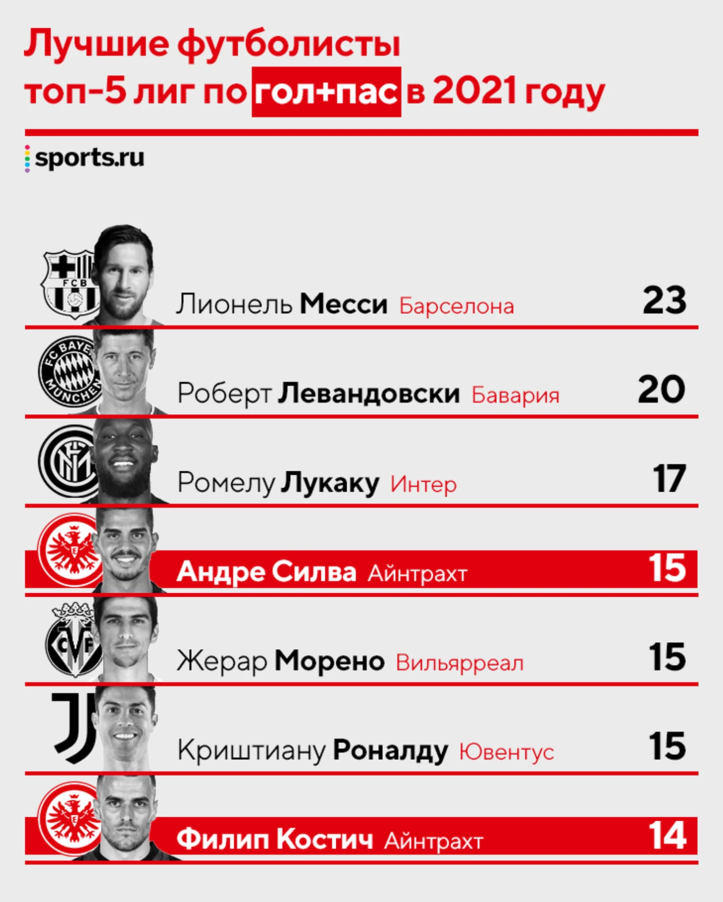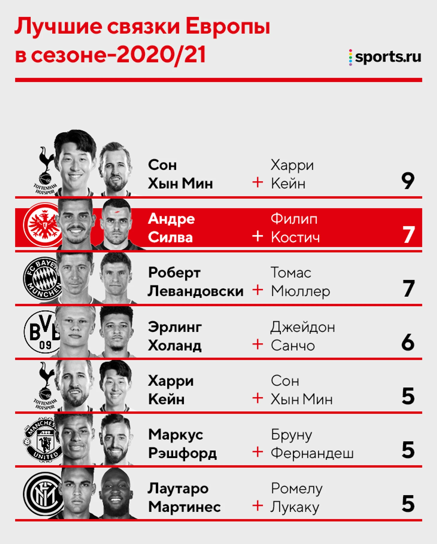 Силва забил уже семь голов после передач Костича (шесть – в 2021-м). Связка «Айнтрахта» на дистанции всего сезона уступает только уникальной паре Харри Кейн – Сон Хын Мин.