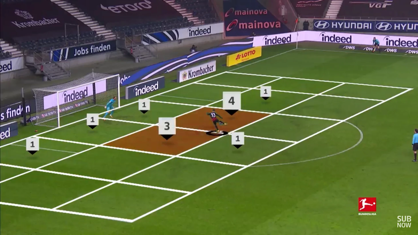 Силва редко смещается на левый фланг, но часто именно благодаря его действиям мяч оказывается на бровке. Наработка из первой части сезона сохраняется – с помощью качественных длинных передач Ндика и особенно Хинтереггера Силва скидывает мяч в заполненную зону. Андре хорош в этом компоненте – всего ему отдали 1393 передач, ни один другой нападающий Бундеслиги так не интегрирован в командное взаимодействие.