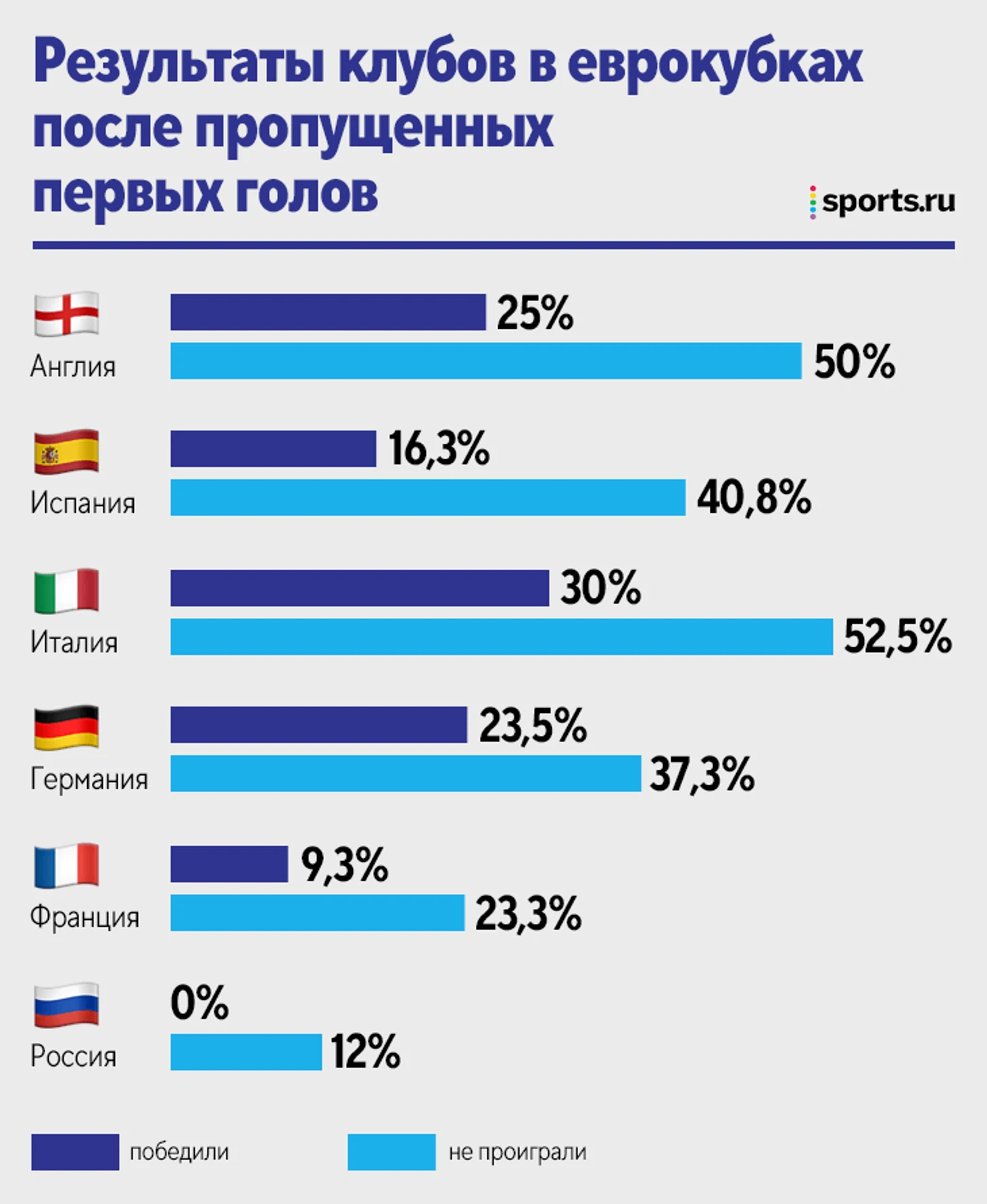 Последние два сезона российские клубы ужасны в еврокубках. Квинтэссенция – их статистика, когда пропускают первыми