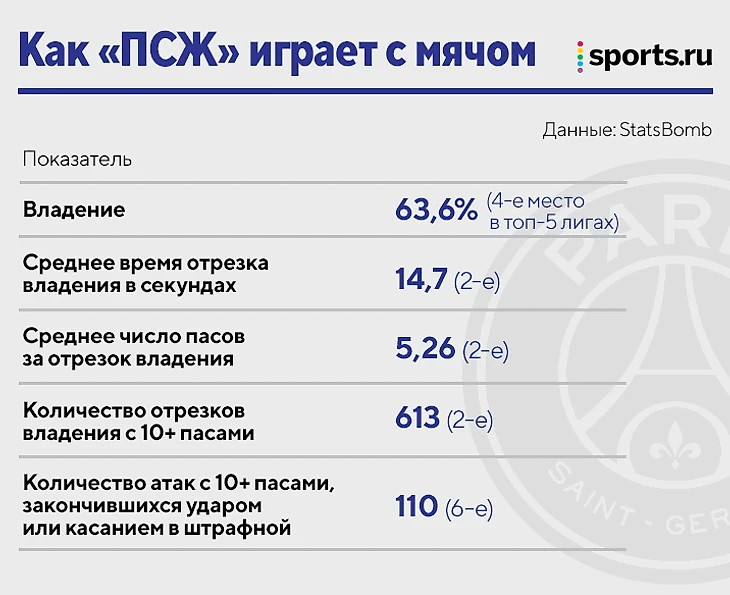 Кажется мелковато? На самом деле это единственная системная проблема «ПСЖ» без мяча. Перестраховки в позиционных атаках делают «Париж» устойчивым к быстрым выпадам в ответ, а на стандартах у своих ворот команда Почеттино – вторая лучшая в топ-5 лигах, меньше ожидаемых пропущенных только у «Сити» (3,9 против 3,6).