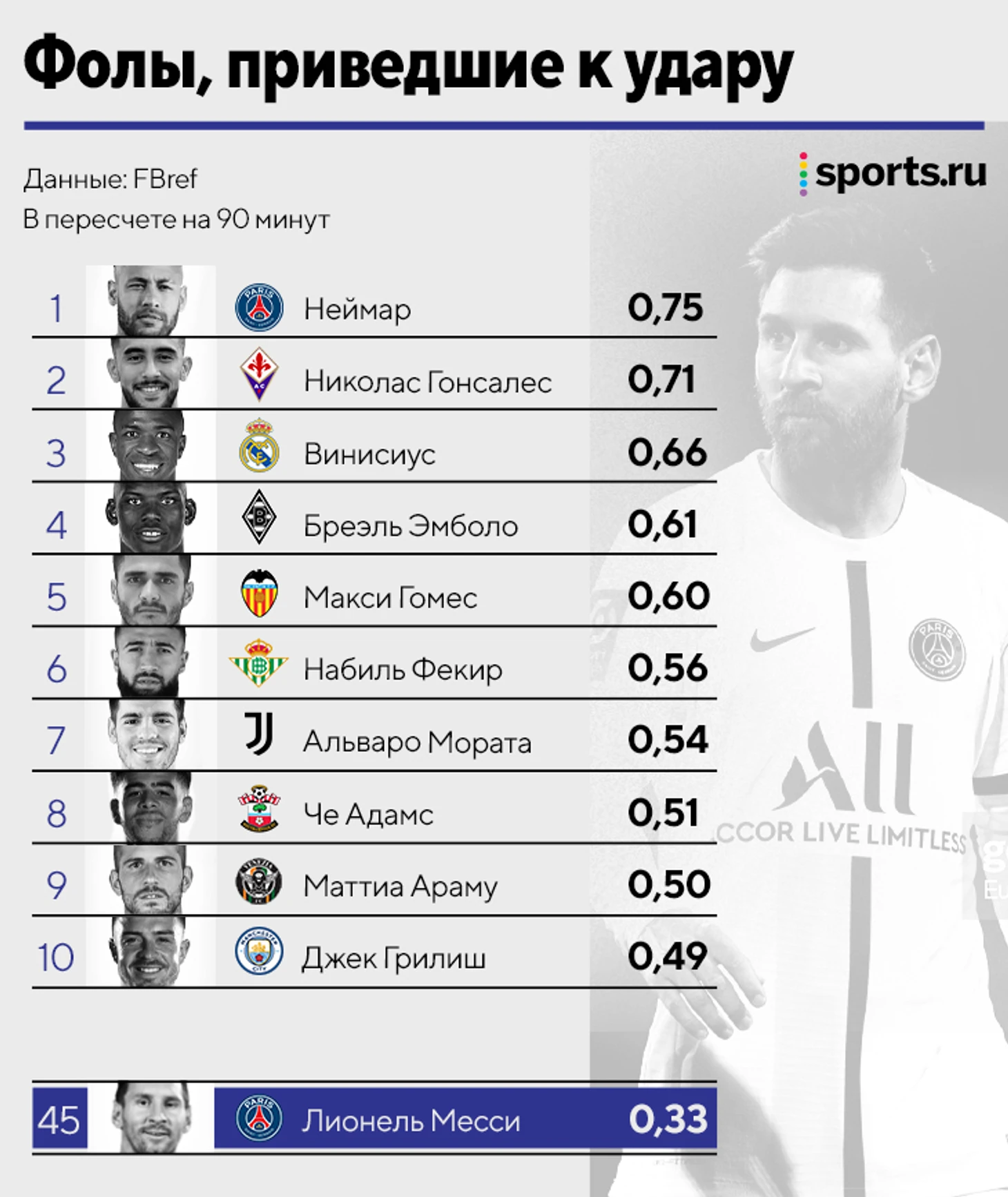 Важно проговорить: под такими фолами подразумеваются нарушения, после которых последовал прямой удар со штрафного. Значит, игроки в топе регулярно зарабатывают опасные стандарты.