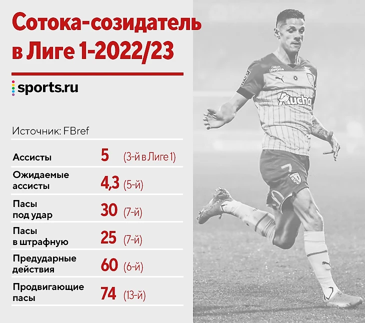 Важная деталь: Сотока третий сезон в Лиге 1 забивает меньше ожидаемого. В сезоне-2020/21 наскреб 8 голов при 10,2 xG, в 2021/22 – 6 при 9,3, в 2022/23 – 6 при 6,4. То есть именно как завершитель Флориан не блистает и в лучший период карьеры. Но даже в роли форварда он не вылетал из основы. Теперь, когда играет атакующего полузащитника, на это еще меньше обращают внимания.