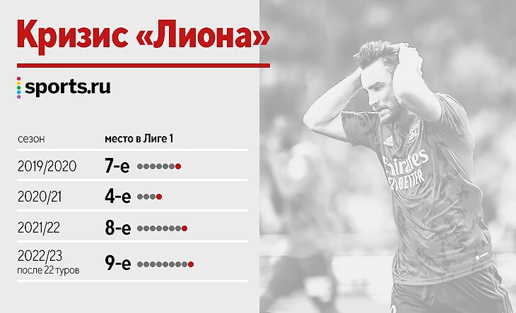 С сезона-2019/2020 «Лион» ни разу не попал в топ-3 и рискует в третий раз за четыре года пролететь мимо еврокубков.