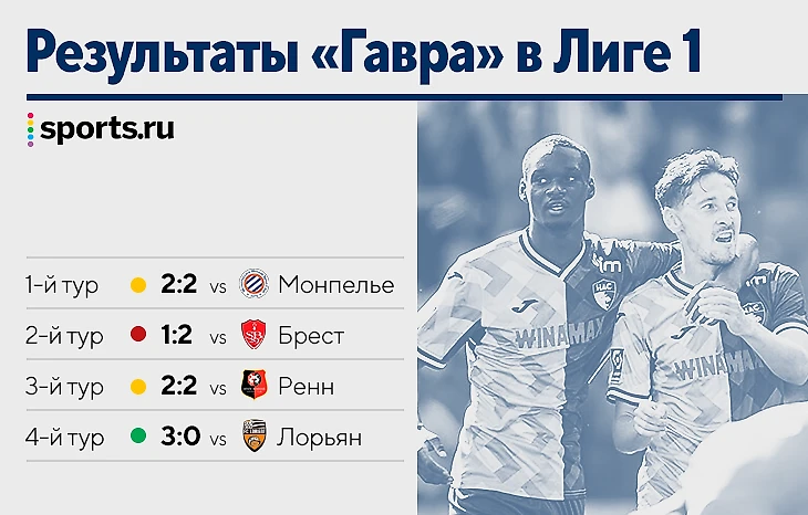 Только в матче с «Ренном» «Гавр» выглядел объективно слабее, но спасся на волевых: проигрывал 0:2, остался вдесятером на 62-й минуте при 1:2, все равно сделал 2:2 и еще более 20 минут героически держался до финального свистка.
