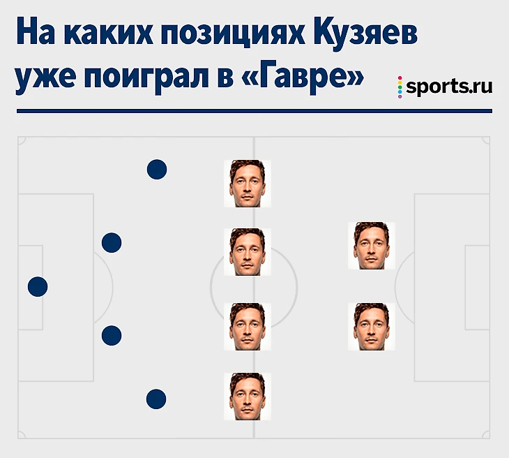Две побочных позиции – левый вингер и правый вингер – увидели в конце матча против «Ренна», когда «Гавр» остался вдесятером. Фактически Кузяев был дополнительным крайним защитником в попытках отбиться от позиционных атак «Ренна». Нормально. Об атаках и речи не шло.
