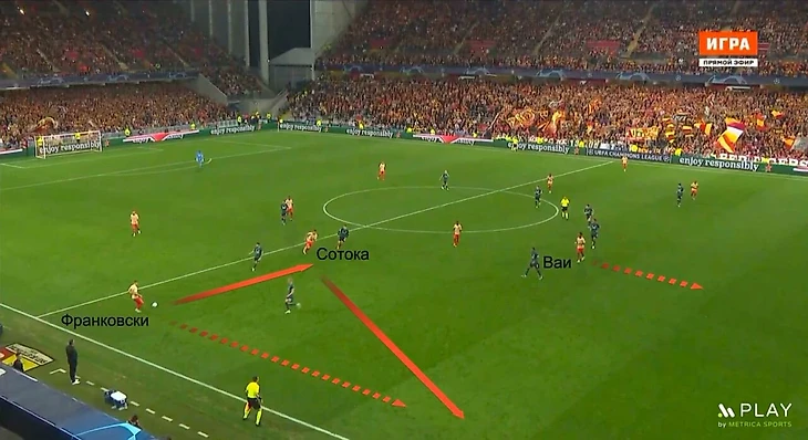 Они в стенку продвинулись в атаку, и Франковски идеально прострелил на Элье Ваи – 2:1. Ваи – игрок эпизода, он может 30 минут бродить в изоляции, чтобы взорваться в спринте или ловко среагировать на передачу, как сделал тут. Или как ассистировал в первом тайме.