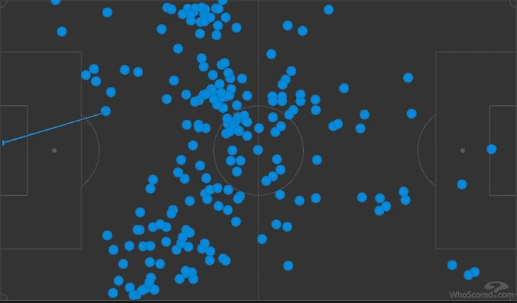 Визуальное воплощение стерильности – карта действий с мячом «Арсенала» с 69-й минуты по 88-ю. 0 касаний в чужой штрафной.