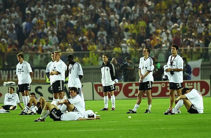 Из-за перебора желтых Баллак, самый яркий футболист той Германии, пропустил финал против Бразилии, где Германия проиграла 0:2. В основе от «Байера» были Рамелов, Шнайдер и Нойвилль. Да, все они в четвертый раз подряд остановились в шаге от титула.
