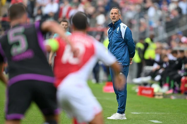 Пришедший в клуб летом 2023-го Ади Хюттер мгновенно изменил схему с 4-2-2-2 на любимую 3-4-2-1. Так сильно любит 3-4-2-1, что «Монако» уже в нескольких играх выходил с тройкой центральных защитников, где не было номинальных центральных защитников. Например, такой набор: крайний защитник Вилфрид Синго и два опорника Денис Закария и Сунгуту Магасса.
