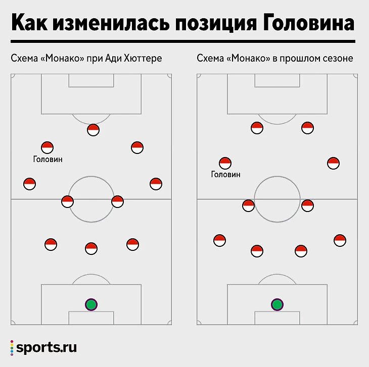 При Коваче и Клемане было заметно, что у Головина много креативной свободы. Но так, как при Хюттере, и правда не было никогда. Александр проводит лучший сезон по количеству пасов, по пасам в штрафную, по продвигающим передачам, по пасам вразрез, по предударным действиям, по разыгранным стенкам. Он главный созидатель «Монако», при этом в любой момент превращается то в завершителя, то в двигателя мяча (отходит в глубину для развития атак).