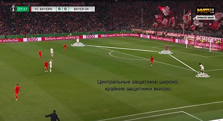 Алонсо явно оценил фишку Нури Шахина из классикера: центральные защитники располагались широко, крайние поднимались высоко и уводили опекунов. Так Алонсо сокращал численное давление «Баварии».