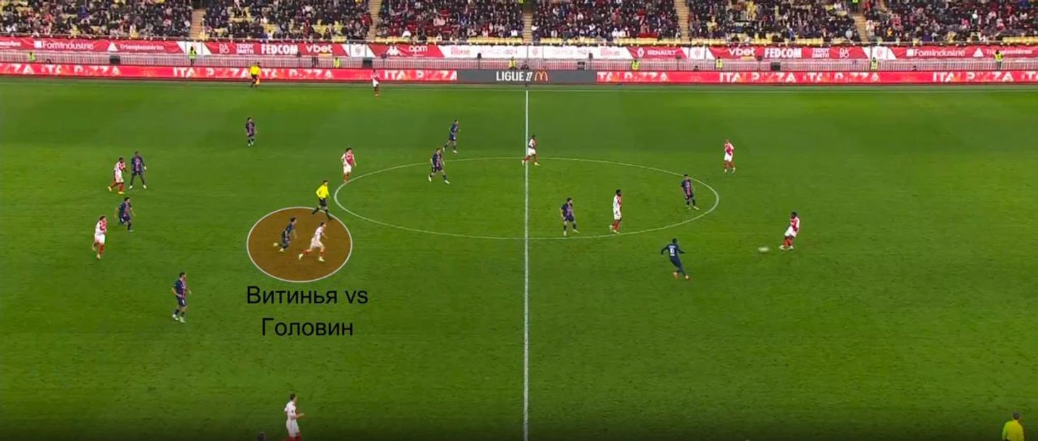 По ходу атаки Головина опекал Витинья, самый оборонительный в тройке полузащитников «ПСЖ».
