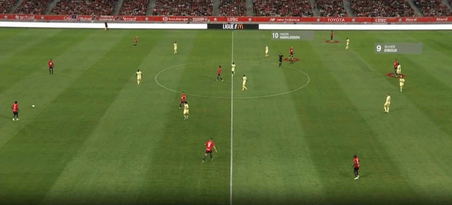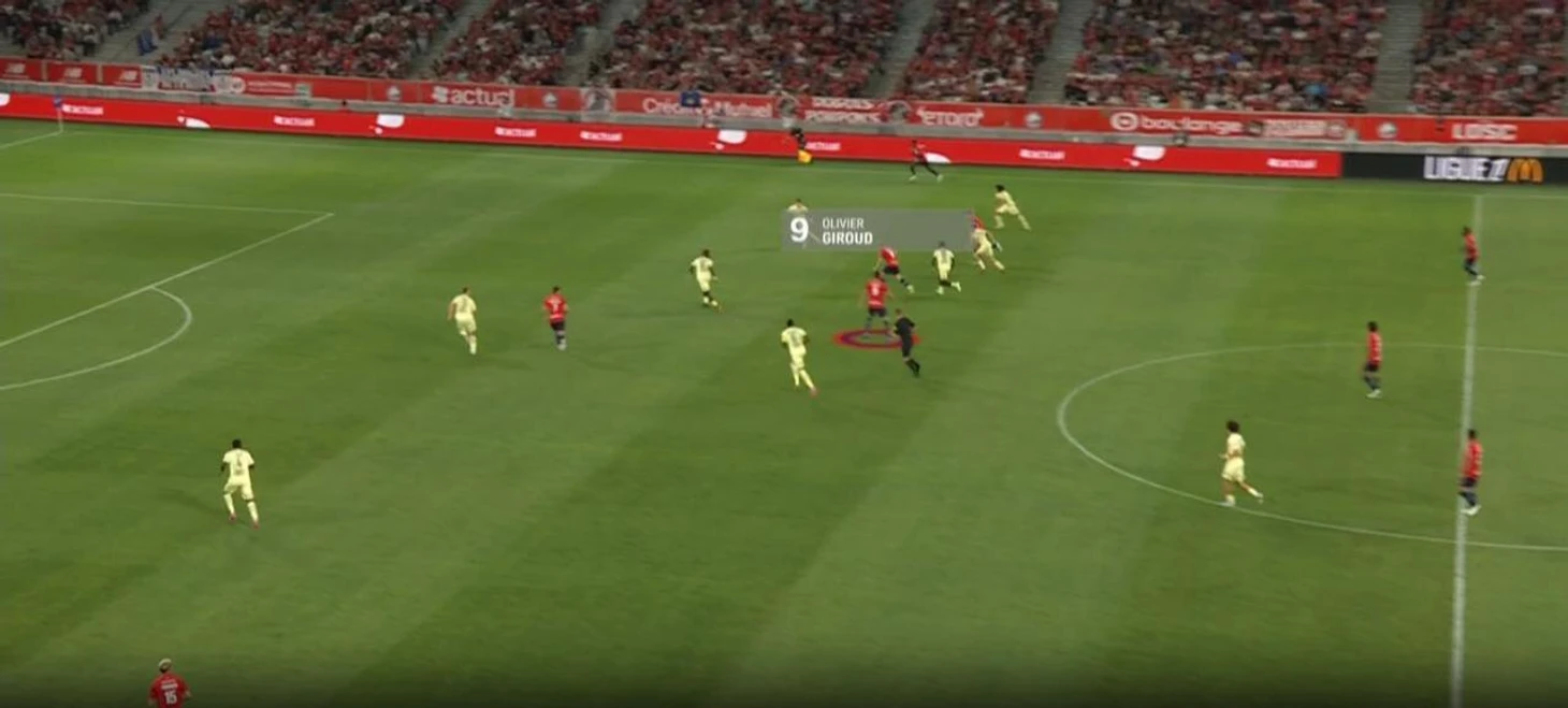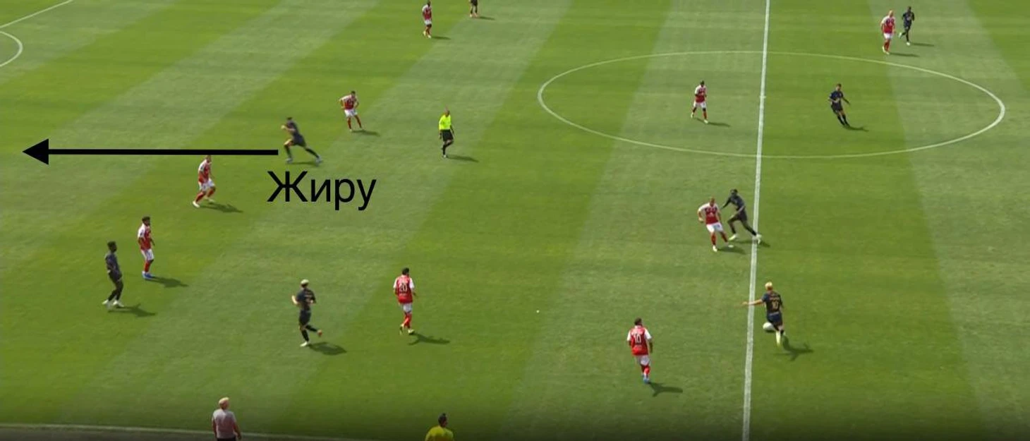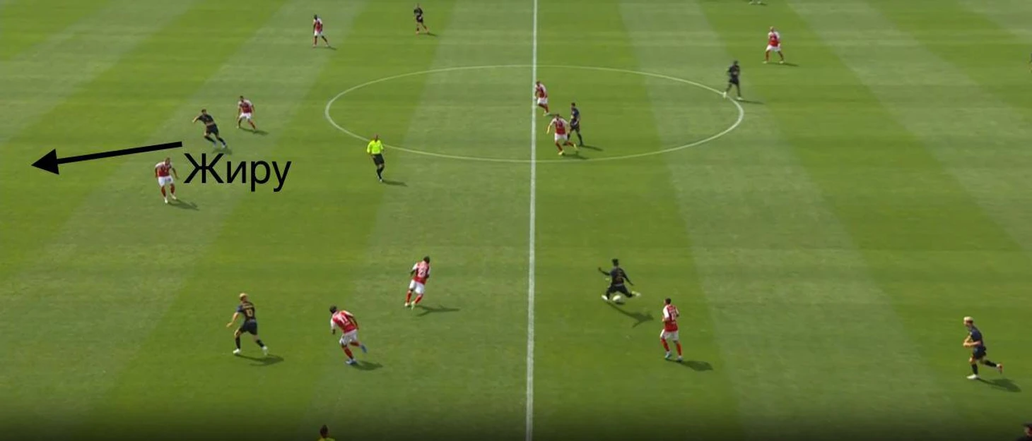 Менее заметная, но крайне ценная работа Оливье: помощь в создании пространства для партнеров. Здесь он рывком увел защитника, увеличив и так большой коридор для Харальдссона, чтобы выйти один на один с вратарем после заброса из глубины. Не касаясь мяча, Жиру сделал атаку «Лилля» гораздо опаснее.