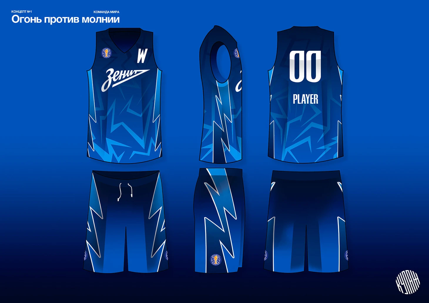 – Первый комплект мы специально сделали в тех же оттенках, что и представленные лигой. Хотелось показать, что с исходным ТЗ можно сделать интереснее. Убрали лишнее, добавили паттерны. Красной команде России сделали языки пламени, а команде мира синие молнии. Так появилась концепция противостояния двух энергий. Ведь идейности реальной форме тоже не хватает, а красивая история тоже привлекает людей на баскетбол. В том числе детей. Огонь против молнии! Круто же! Сколько мерча можно сделать интересного, подготовить необычный перфоманс.