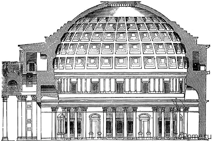 Пантеон – единственный храм в мире, который сохранился до наших дней почти в первозданном виде. После большого пожара император Октавиан Август построил храм всех богов на месте округлого бассейна, которому Пантеон обязан формой. Архитектор пристроил к цилиндрическому зданию вход в виде портика и придал сооружению нынешний вид.
