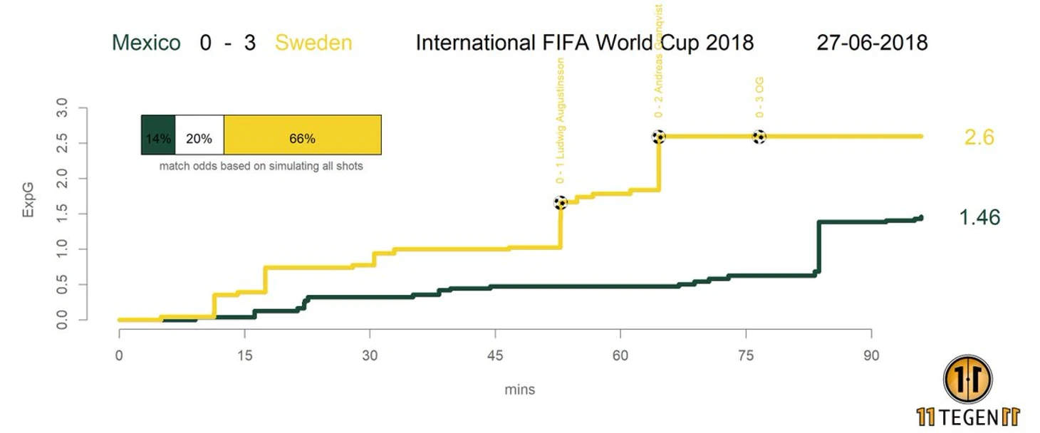 Не смотря на целых 20 ударов, у Мексики xG 1.46, в то время как у шведов этот показатель равен 2.6.